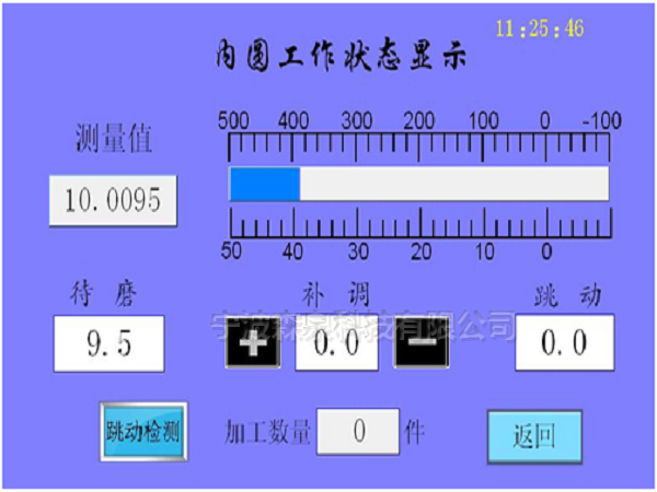 當各種數(shù)值都設(shè)定好后,在“加工中操作面板”點擊“啟動”按鈕,便進入自動測量狀態(tài)(儀器上電時自動進入)。外徑與內(nèi)徑對應(yīng)不同的工作狀態(tài)顯示界面,分別如下圖所示: